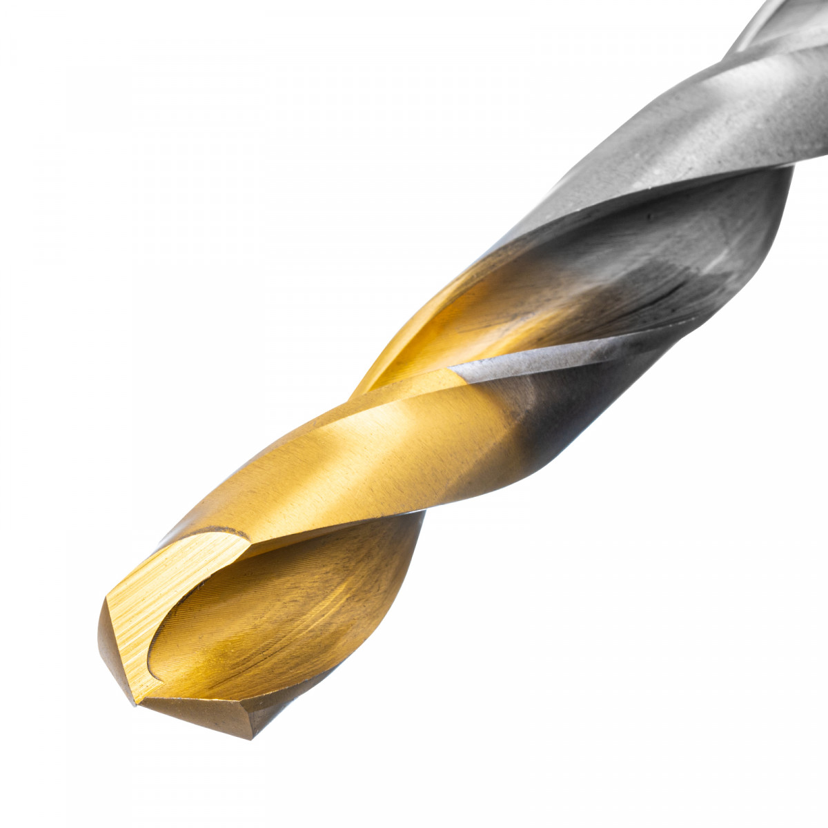 - Высокий ресурс — нитридтитановое покрытие уменьшает трение и увеличивает стойкость сверл к нагреву и износу.