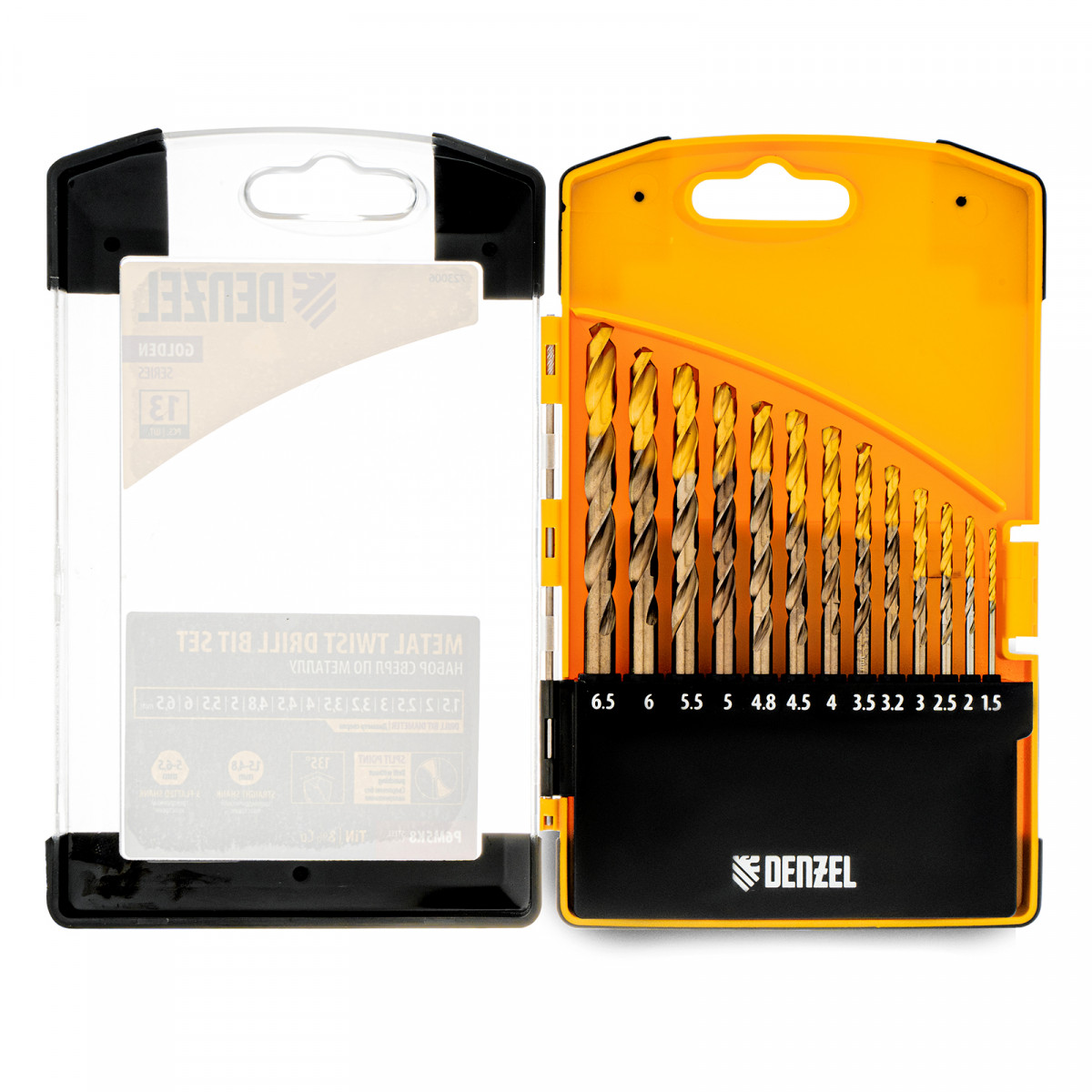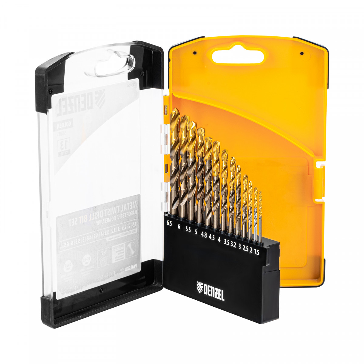 Набор сверл по металлу, 1,5-6,5мм, Р6М5К8-TiN, Golden Tip, 13 шт Denzel