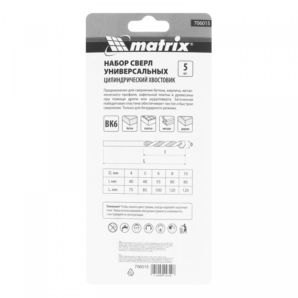 Набор сверл универсальных, 4-10мм, 5 шт Matrix