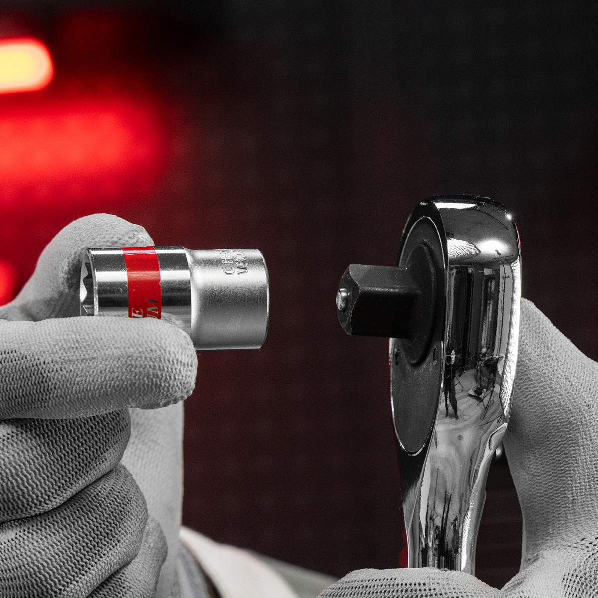 - Быстрый поиск нужной торцевой головки — на корпусах насадок имеются красные полоски и маркировка с обозначением размера.