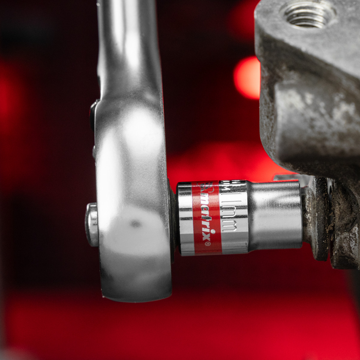 - Быстрый поиск нужной торцевой головки — на корпусах насадок имеются красные полоски и маркировка с обозначением размера.