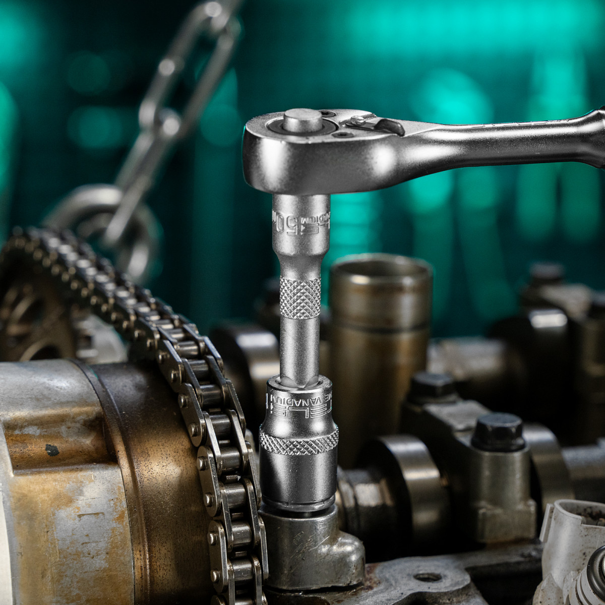 - Удобная работа в труднодоступных местах — трещотка с 72 зубьями позволяет вращать крепеж плавно и мягко.