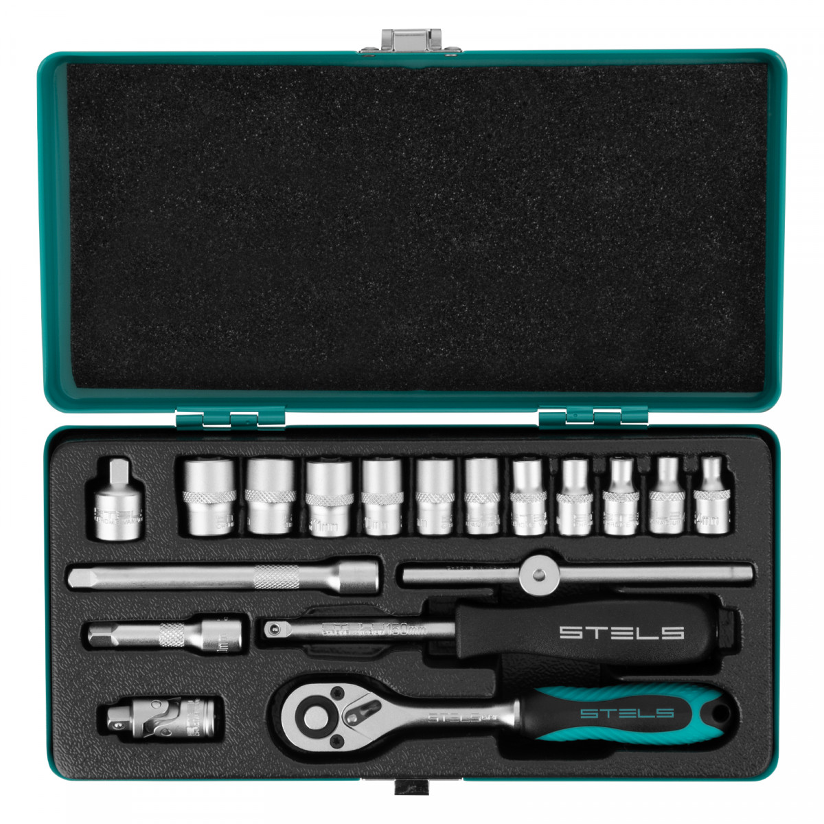 Набор торцевых головок с трещоткой, 1/4", 18 предметов Stels