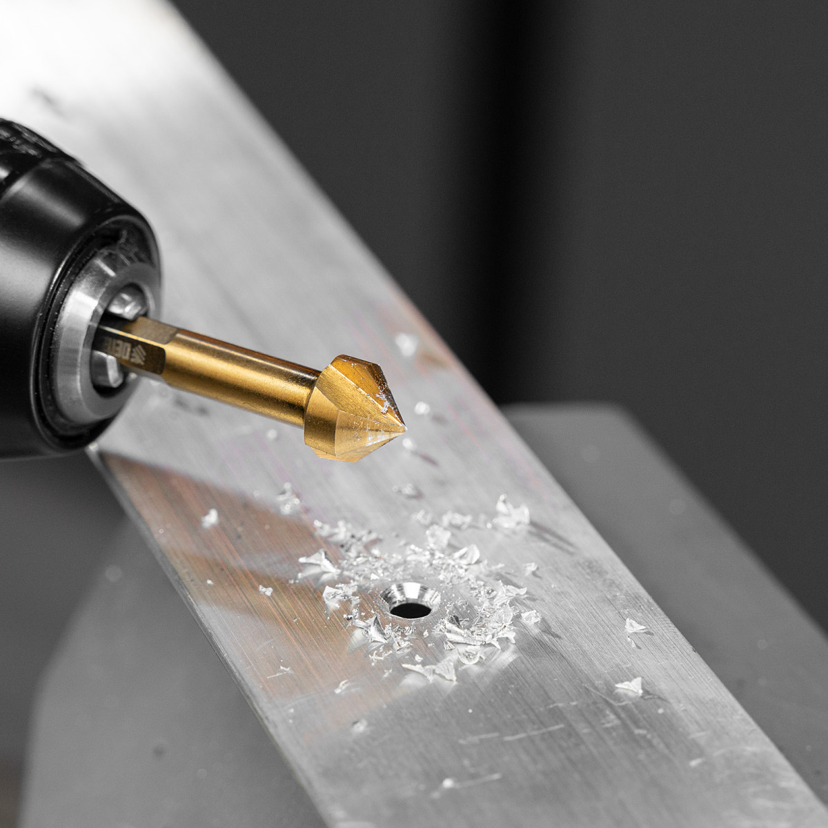 • Удобное хранение и транспортировка — зенковки упакованы в прочный металлический кейс.