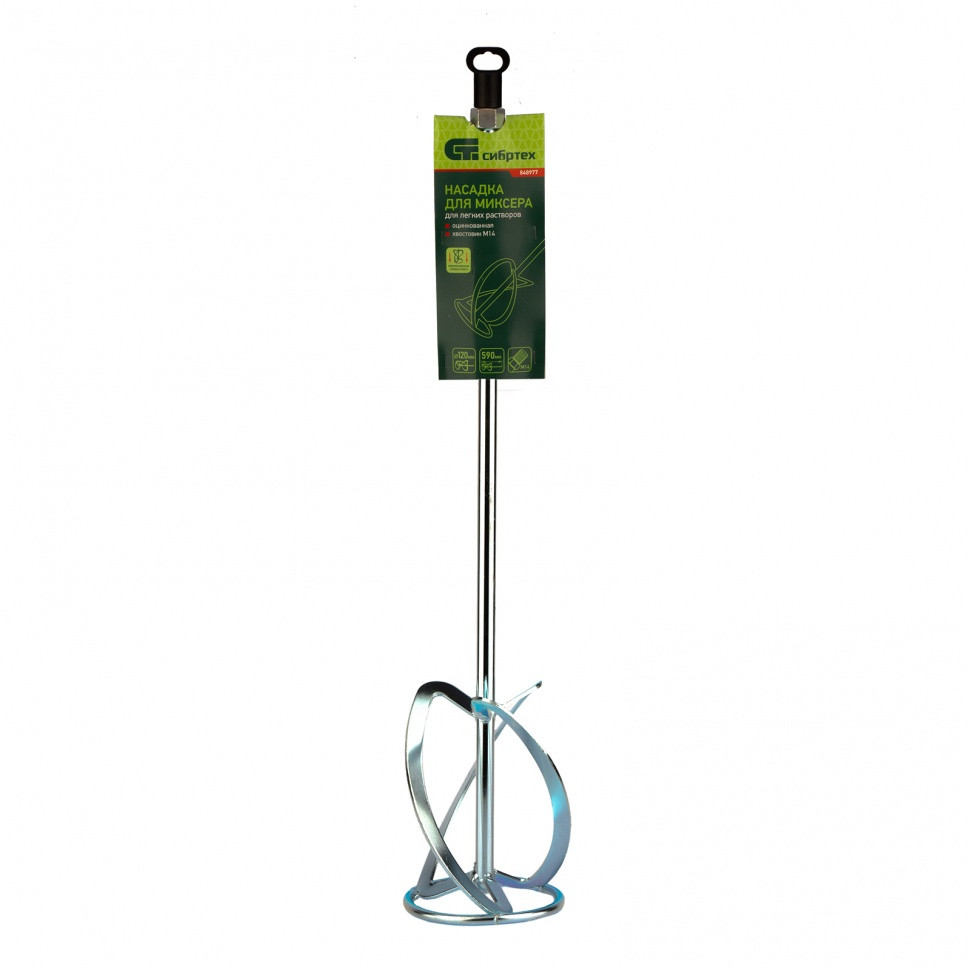 Насадка для миксера, для легких растворов, 120 х 590 мм, оцинкованная, хвостовик резьба М14 Сибртех