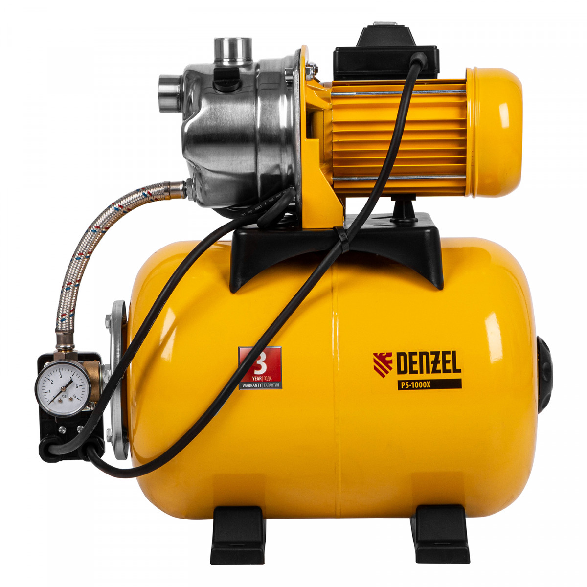 Насосная станция PS1000Х, 1000 Вт, 3500 л/ч, ресивер 24 л, подъем 44 м, нержавейка Denzel