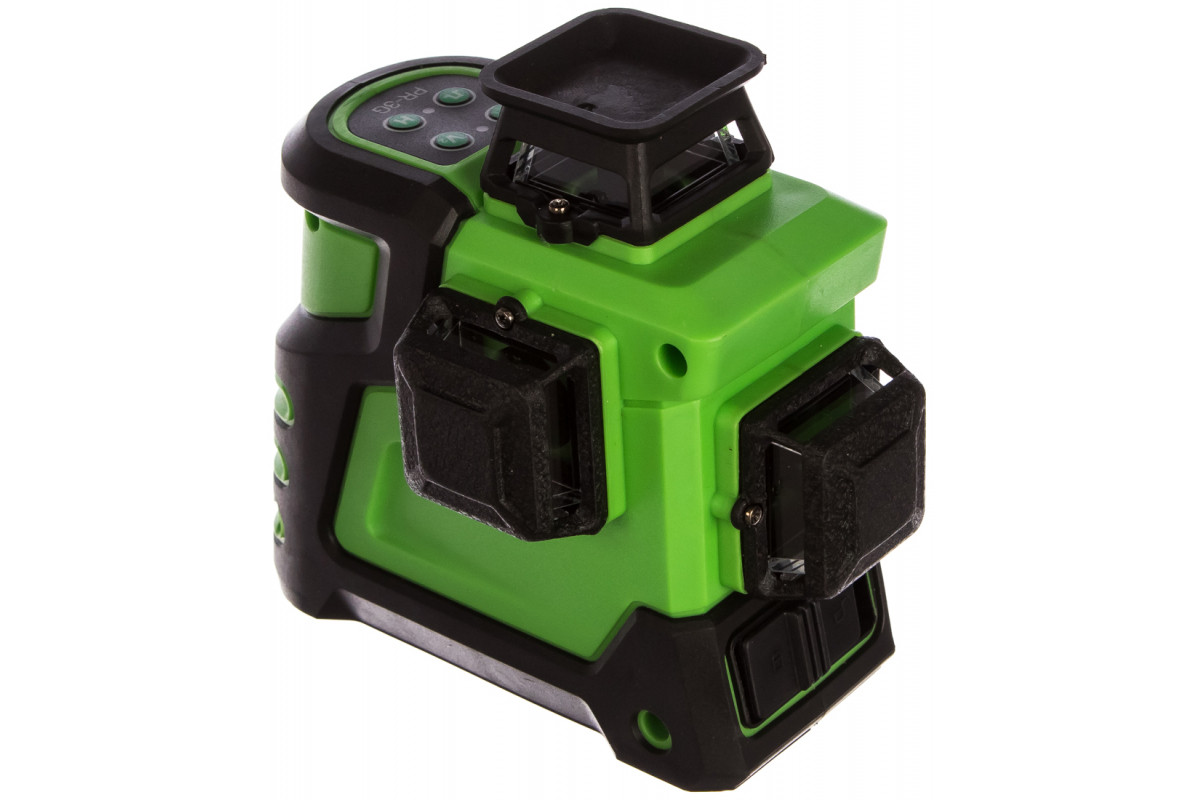 По цене доступный. 3 зеленых проекции по 360 градусов. Есть режимы работы с приёмником и под наклоном, плоскости переключаются отдельными кнопками. Максимальное выдвижение на стреле от стены - на 11 см. Успокаивается в районе 3 секунд, как и написано в инструкции. Блокровкарка производится без люфтов и шумов. На расстоянии в 15 метров толщина луча около 4-5 мм, причем их достаточно хорошо видно, даже при свете.