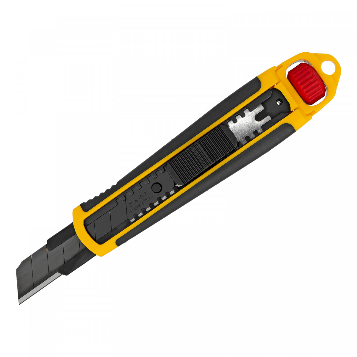 Нож, 18 мм, сменное лезвие, SK4, корпус из ABS + TPR, торцевой зажим Denzel