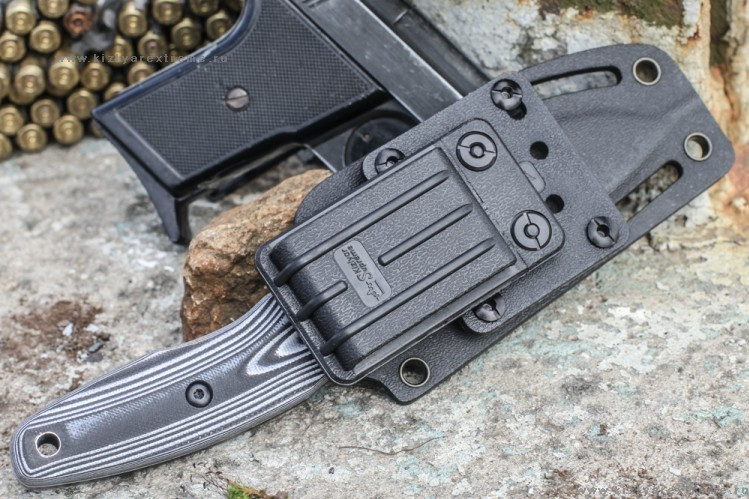 Чехол Урбана изготавливается из Kydex и снабжен переставляемой клипсой, позволяющей закрепление ножа в различных позициях.