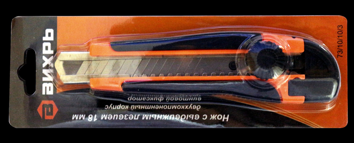 Нож с выдвижным лезвием 18 мм, двухкомпонентный корпус, винтовой фиксатор, Вихрь