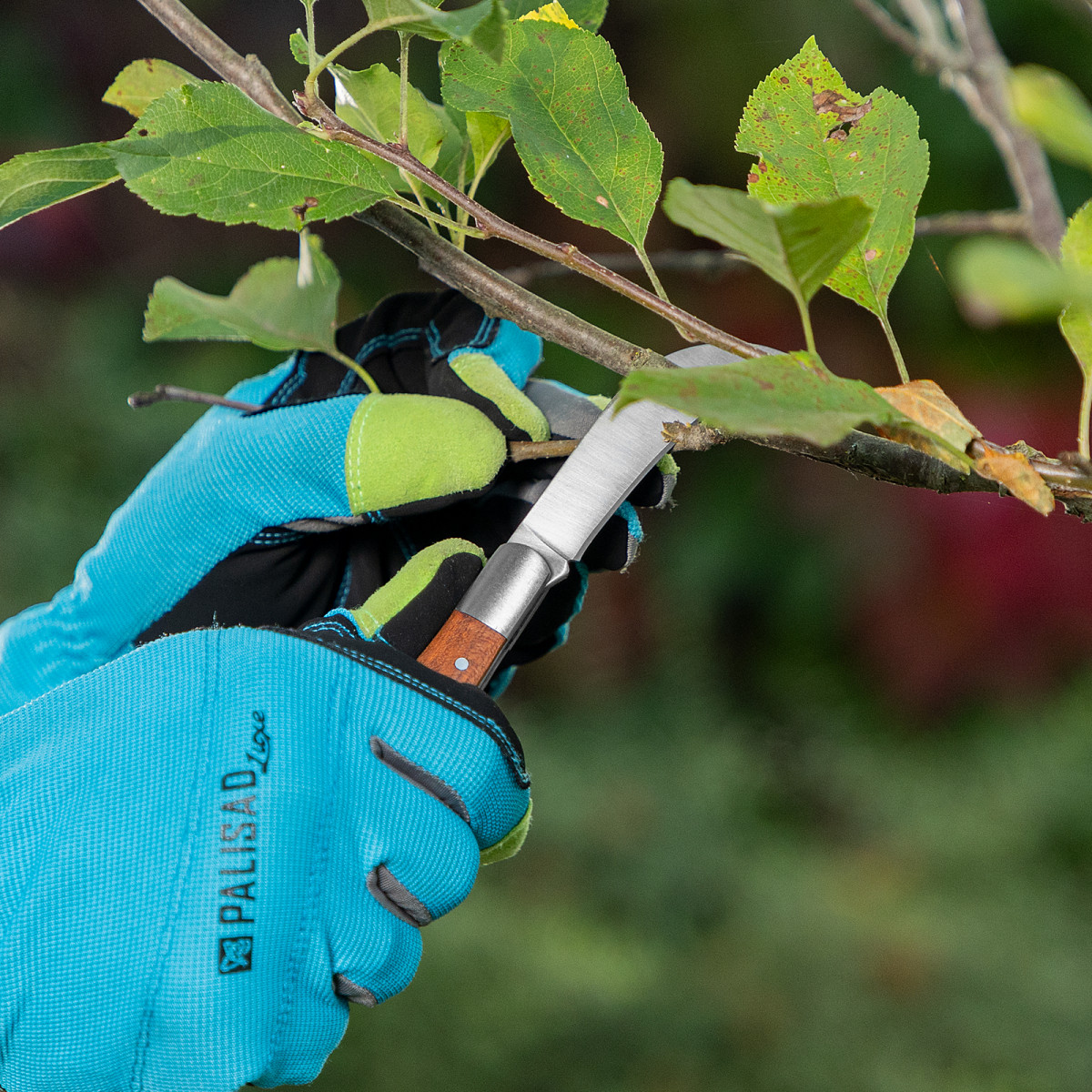 Складной садовый нож Palisad 79001 длиной 170 мм, с деревянной рукояткой, имеет изогнутое лезвие серповидной формы, поэтому легко срезает ветки и грибы. Он пригодится садоводам для удаления шипов со стеблей, зачистки поперечных срезов и т.д. Нож складной конструкции удобно транспортировать и хранить, т.к. лезвие спрятано в корпус. Для сохранения остроты лезвия и предотвращения появления налета рекомендуется после использования протирать его сухой салфеткой и смазывать маслом.