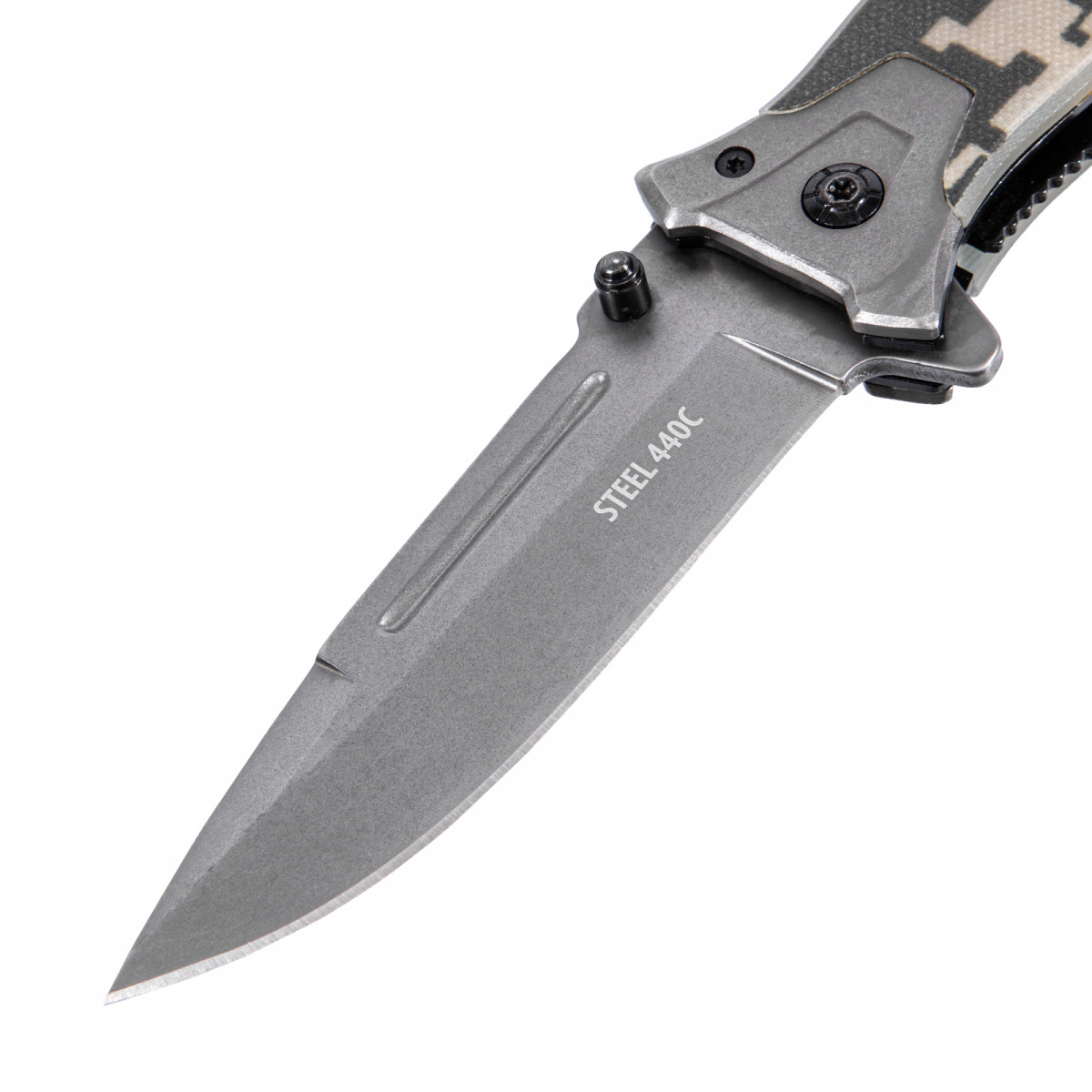 • Высокий ресурс и коррозионная стойкость — лезвие ножа выполнено из стали 440C твердостью 56-58 HRC с покрытием TiCN.