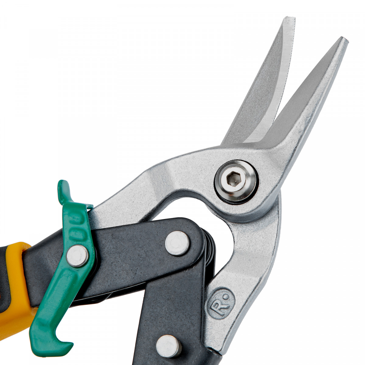 Ножницы по металлу, 270 мм, прямой и правый рез, сталь-СrMo, трехкомпонентные рукоятки Denzel