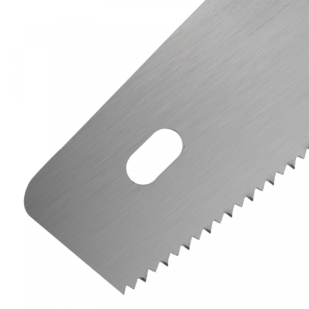 Ножовка по дереву 23163 с длиной полотна 400 мм и пластиковой рукояткой — режущий инструмент, шаг зубьев которого составляет 4 мм. Применяется для продольно-поперечного пиления древесины. Пилит в направлении от себя и на себя. Крупные зубья обеспечивают быстрый рез. Если режущая кромка затупится, ее можно заточить. Пила будет полезна столяру и плотнику, пригодится также дома или на даче.