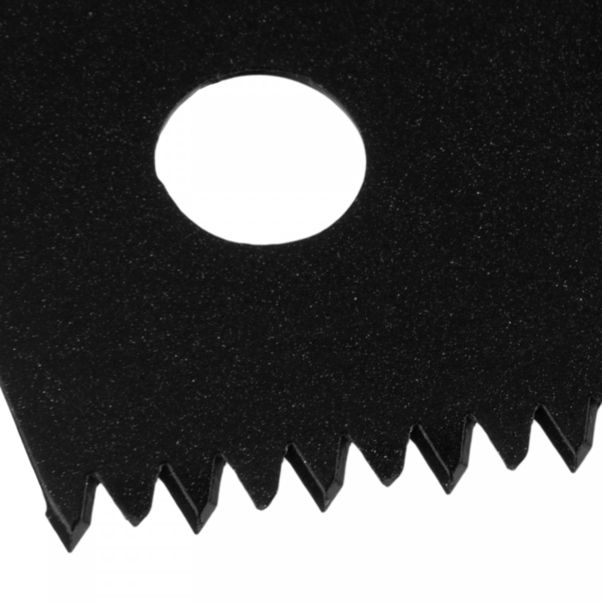 • Высокий ресурс — закаленные зубья твердостью 50-55 HRC долго держат заточку, тефлоновое покрытие защищает полотно от коррозии.