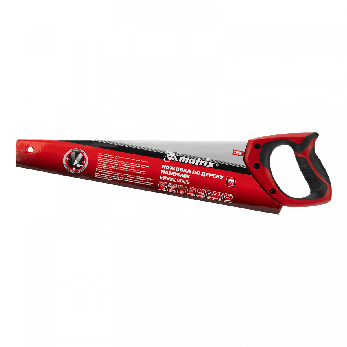 Ножовка по дереву, 450 мм, 7-8 TPI, зуб-3D, каленый зуб, тефлоновое покрытие полотна, двухкомпонентная рукоятка Matrix