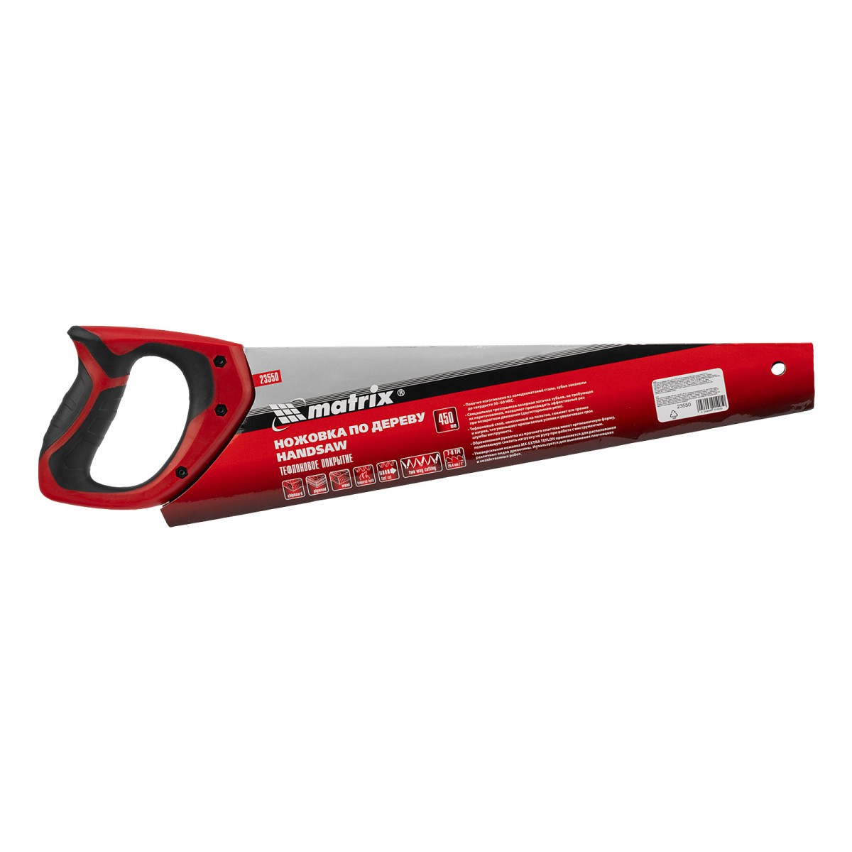 Ножовка по дереву Matrix 23550 с полотном длиной 450 мм, калеными зубьями с шагом 7-8 TPI и 3D-заточкой, с тефлоновым покрытием полотна и 2-компонентной рукояткой, предназначена для продольного и поперечного пиления древесины, фанеры и ДСП. Имеет 7-8 зубьев на дюйм, поэтому подходит для быстрой распиловки заготовок. Трехгранная заточка зубьев обеспечивает инструменту повышенную производительность. Ножовка будет полезна столяру, плотнику, а также пригодится в домашнем хозяйстве.