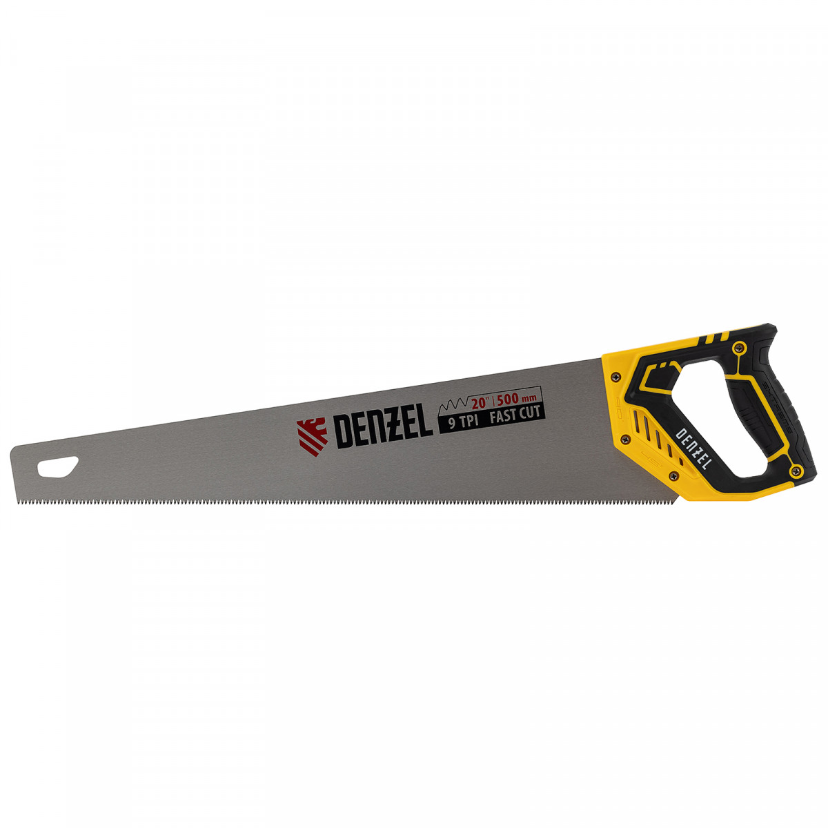 Ножовка по дереву, 500 мм, 9 TPI, зуб 3D, двухкомпонентная рукоятка Denzel