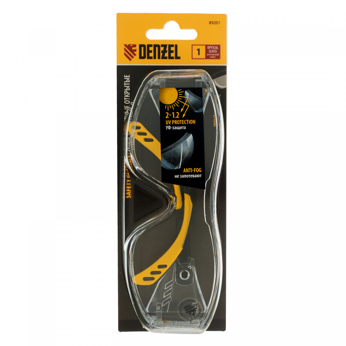 Очки защитные открытые, поликарбонатные, увеличенная прозрачная линза,  регулируемые дужки Denzel