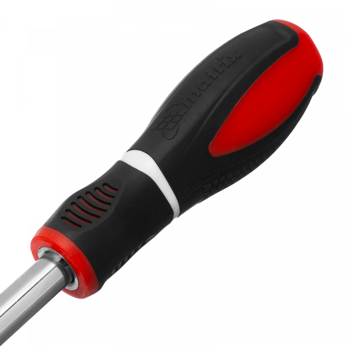 Комбинированная отвертка Matrix «Era» 13381 укомплектована стержнем и двухсторонними битами, что позволяет осуществлять монтаж/демонтаж крепежа со шлицами SL5,0 / PH1, SL6,0 / PH2. Инструмент рассчитан на профессиональное применение при проведении строительных, монтажных и ремонтных работ. Отвертка со стержнем 75 мм актуальна для работы с крепежом в углублениях.