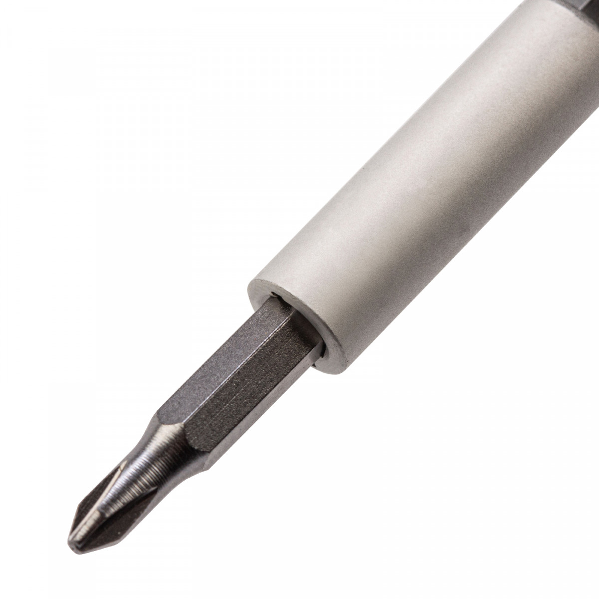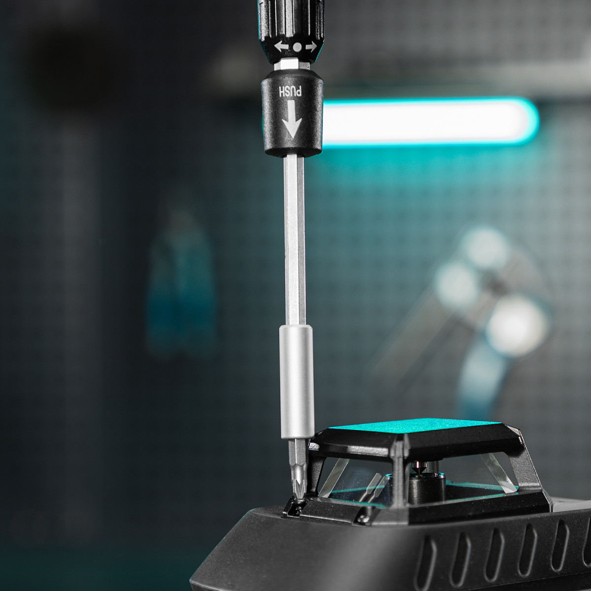 • Намагниченные биты позволяют легко доставать металлический крепеж из углублений и насаживать его одной рукой.