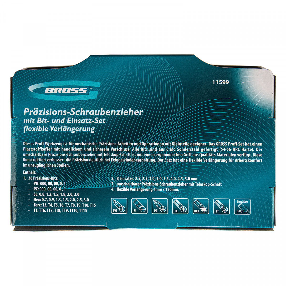 Отвертка с набором бит и торцевых головок для точных работ, гибкий привод, 48 шт, CrMo Gross