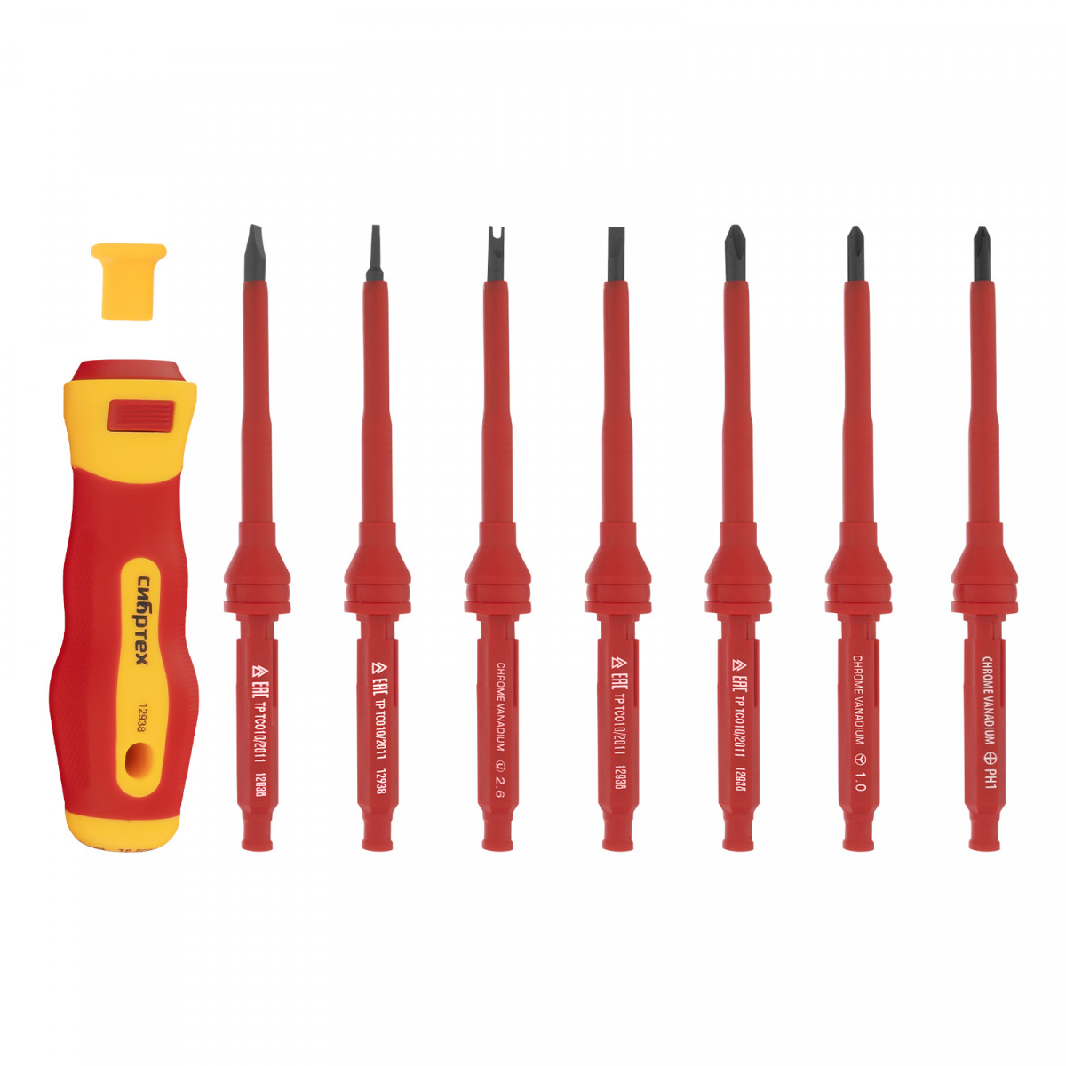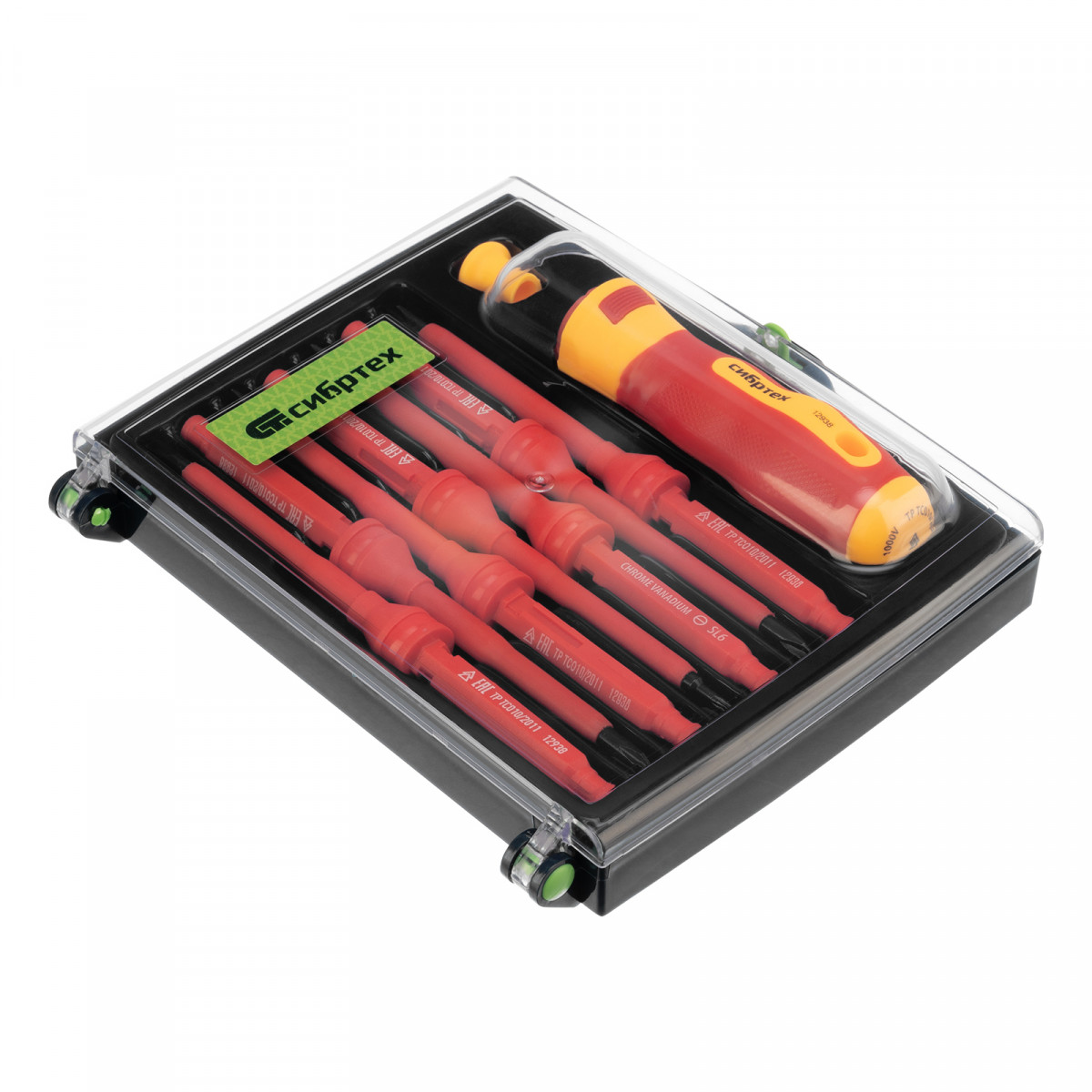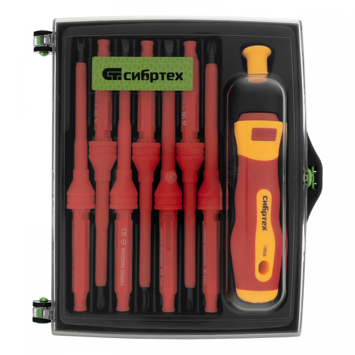 Отвертка со сменными жалами, диэлектрическая до 1000 В, 9 предметов, CrV Сибртех