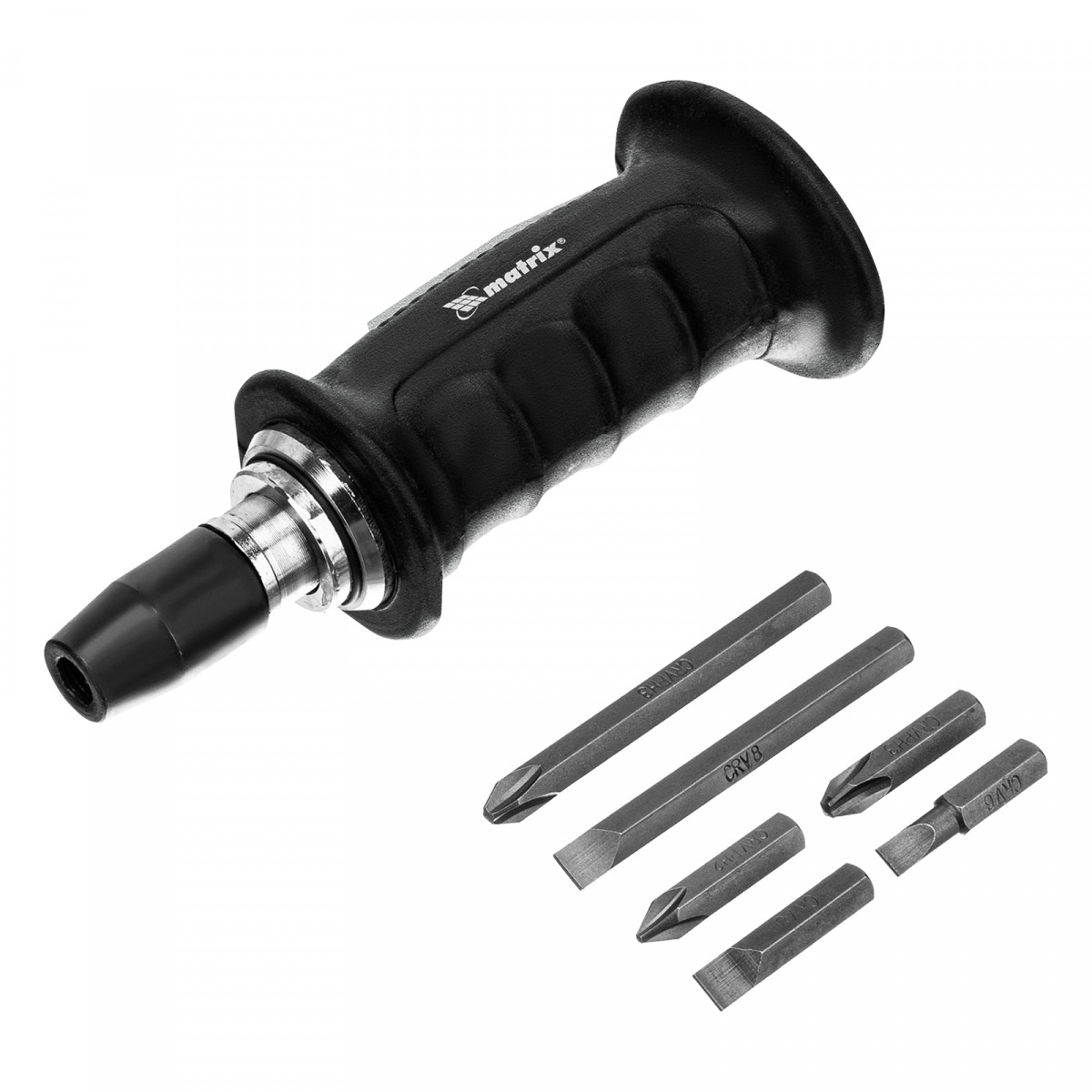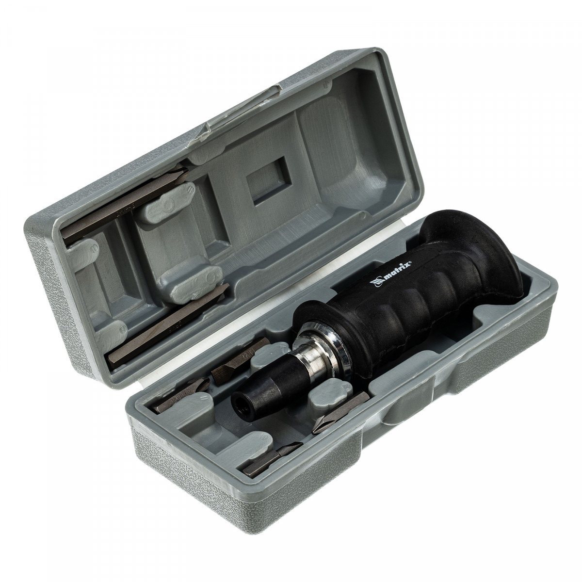 Отвертка ударно-поворотная 1/2, набор бит, 6 шт, черная ручка Профи, пластиковый бокс Matrix