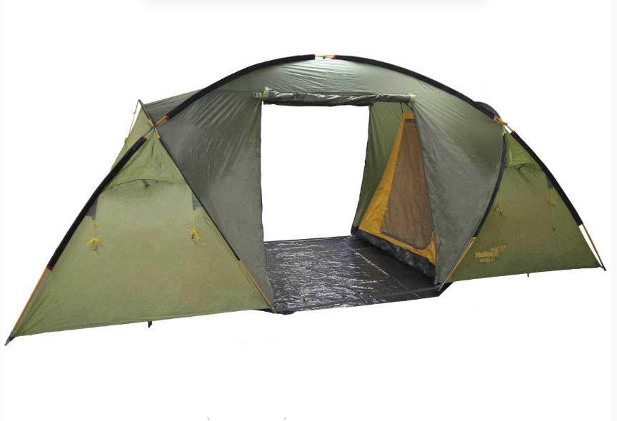 Кемпинговая палатка Bora-6 (HS-2371-6 GO) от Helios - просторная палатка с 2 спальнями и большим тамбуром, рассчитанная на 6 человек. Она идеально подойдет для многодневных походов.