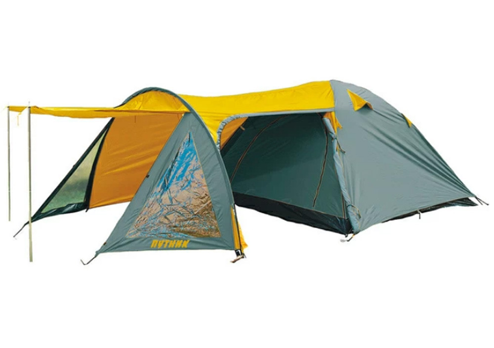 Палатка кемпингового типа для семейного отдыха, рассчитана на длительные стоянки со всеми удобствами. Предназначена для комфортного размещения 3-х человек. Имеет форму шатра с тамбуром и комфортную жилую комнату, что обеспечивает максимально полезный объем.