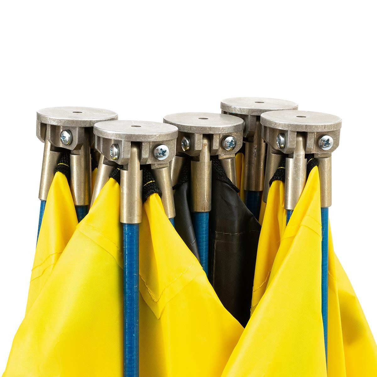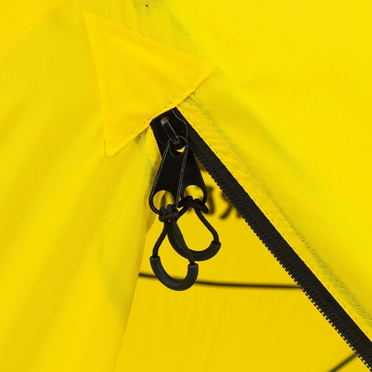 Палатка зимняя быстросборная Куб EXTREME Helios (1,8х1,8х2,0м/ 2-3 человека) специально разработана для любителей подледной рыбалки. В собранном виде палатка имеет кубическую форму с выпуклыми наружу стенками, что способствует увеличению внутреннего объема и позволяет рыболовам стоять в полный рост. Прочный каркас палатки выполнен из фибергласса (диаметр дуги 9,5мм) и обеспечивает сохранение кубической формы даже при сильном ветре. Прочная водостойкая ткань тента (полиэстер 300D, PU 2000мм) надежно защитит от ветра и атмосферных осадков. 2 больших двухслойных окна (прозрачные «стекла» и глухие шторки) на липучках. Снегозащитная внешняя юбка (ширина - 20см), внутренняя юбка (ширина - 15см). Вход палатки застегивается на усиленную молнию с 2 бегунками. В комплект входят 8 ввертышей №2 и 4 прочные оттяжки для более надежной фиксации палатки ко льду. Палатка складывается в прочную сумку-чехол с лямками, которую можно носить как рюкзак.
