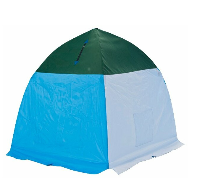 Предназначена для зимнего подледного лова. Изготовлена из высокопрочного дюралевого каркаса и синтетической непродуваемой ткани (оксфорд150PU). 75 см верха палатки - вставка из дышащей ткани (типа брезент), что позволяет безопасно использовать любые (исправные) обогревательные плиты.