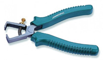 Шарнирно-губцевый инструмент длиной 160 мм и массой 170 гр. применяется для зачистки изоляции проводов при массовом производстве этой операции. С помощью регулировочного винта с фиксатором подбирается оптимальный раствор режущих кромок, прорезающих изоляцию и не повреждающих токоведущую часть. Изделие изготовлено из хромованадиевой стали, снабжено эргономичными ПВХ чехлами рукояток.