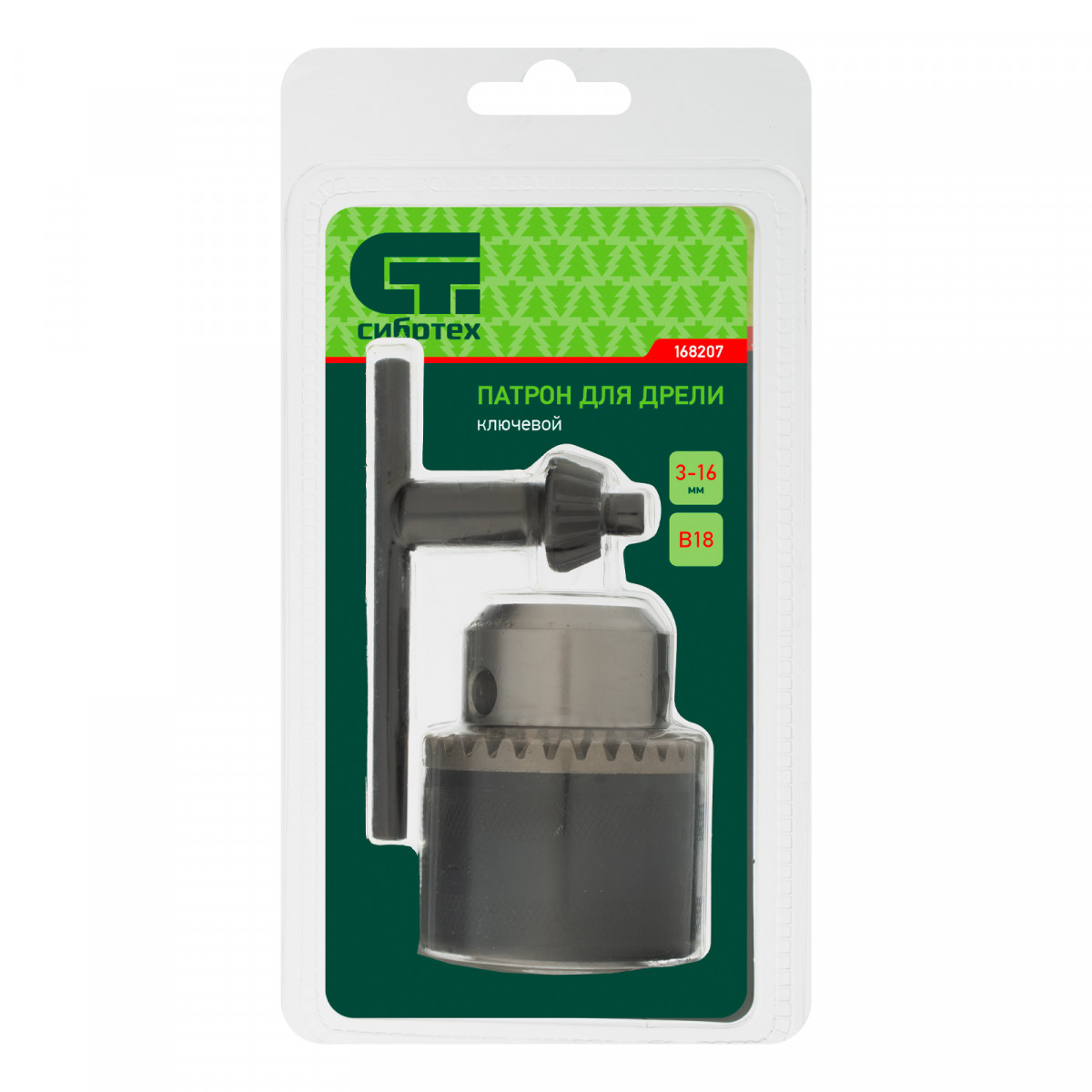 Ключевой патрон для дрели Сибртех 168207, тип соединения В18, обеспечивает надежную фиксацию сверл с хвостовиками 3-16 мм для осуществления сверлильных работ. Будет полезен в быту и для решения профессиональных задач.