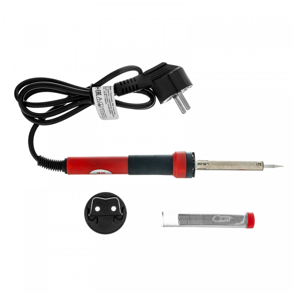 Паяльник Matrix 913043 мощностью 30 Вт оснащен медным наконечником с долговечным гальваническим покрытием. Используется для пайки микрочипов, транзисторов, проводки и электросхем. Поставляется с припоем в пластиковой тубе, поэтому полностью готов к работе. Конусовидное жало удобно для прецизионной пайки. Прибор пригодится радиолюбителям, автоэлектрикам, а также будет полезен в быту.