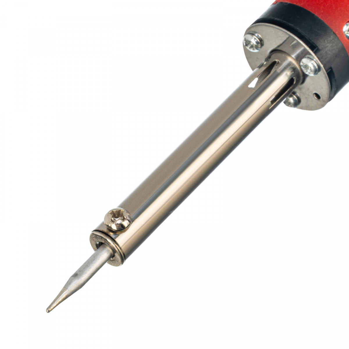 • Удобная эксплуатация — жало с медным сердечником быстро нагревается, при необходимости его можно заменить.