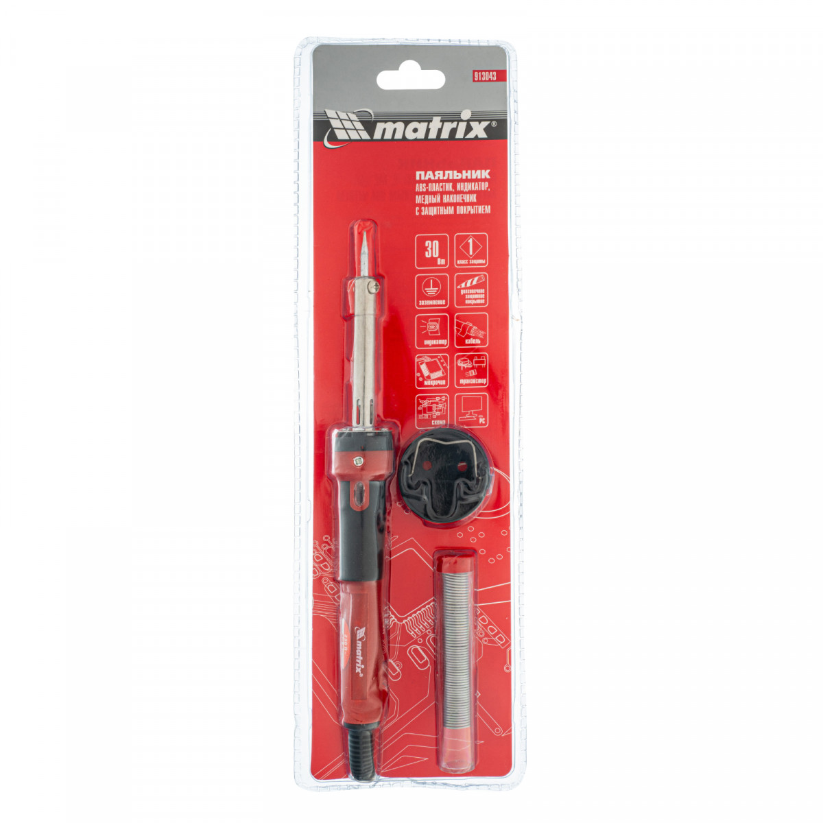 Паяльник, пластик ABS, класс защиты 1, индикатор, медный наконечник с долговечным покрытием, 220 В, 30 W Matrix