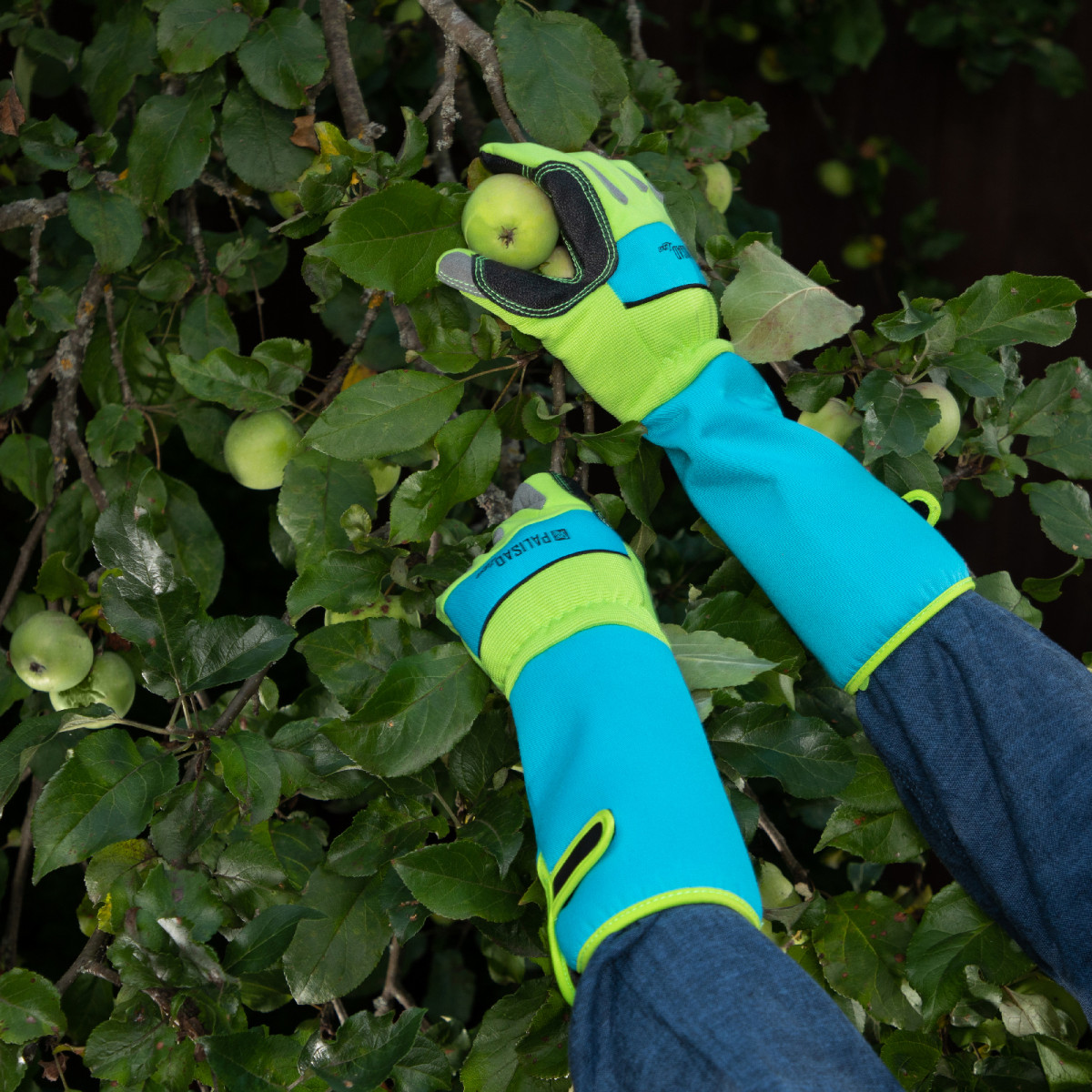 Садовые перчатки Palisad Luxe 67983 размера 9, с удлиненной манжетой, пригодятся во время ухода за растениями на дачном участке. Отличаются повышенной устойчивостью к проколам, поэтому надежно защищают кожу рук от механических повреждений.