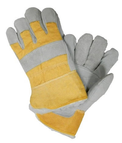 Перчатки спилковые комбинированные, серые с желт. 10.5"