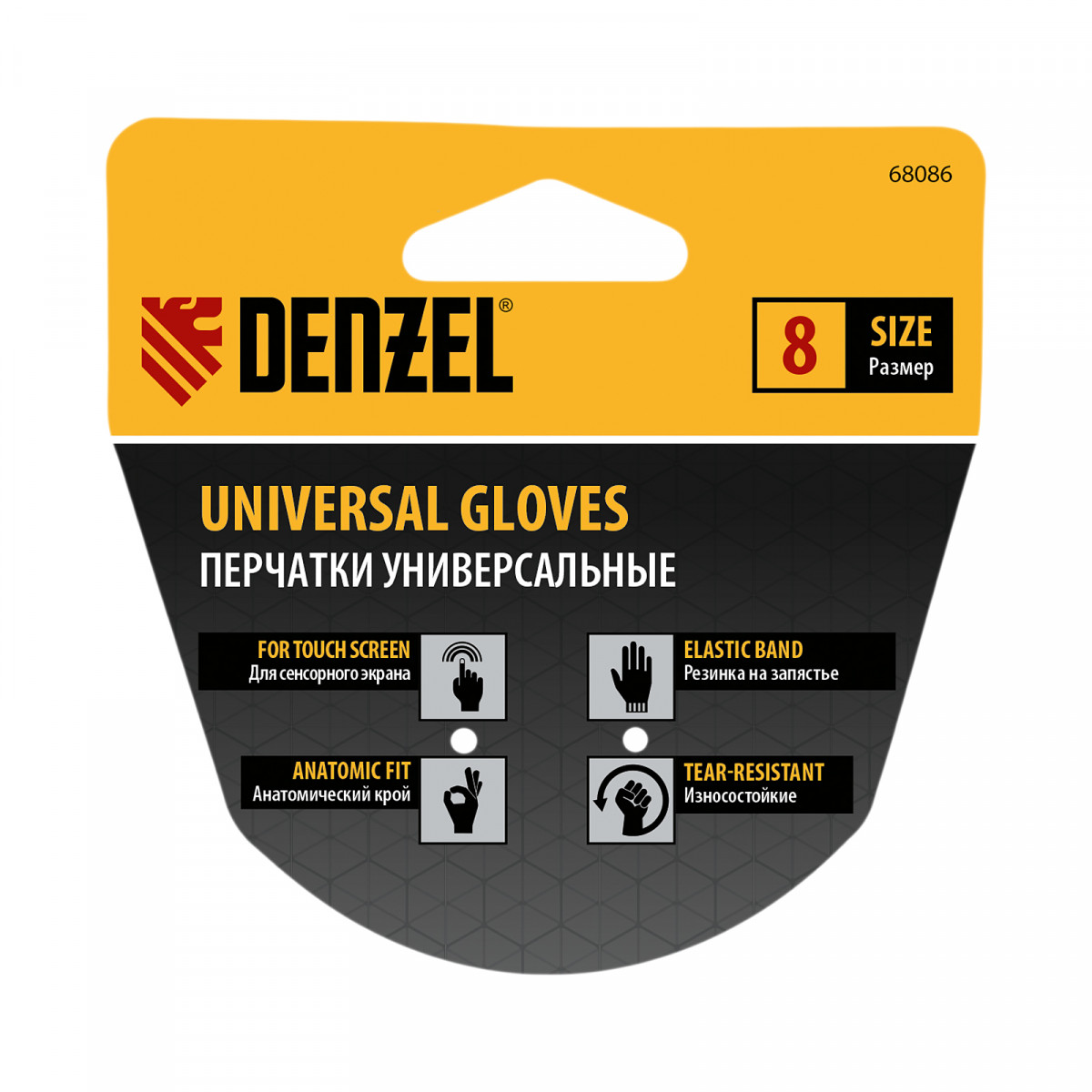 Универсальные перчатки Denzel 68086 размера 8, c искусственным мехом, предназначены для повседневного использования, а также будут полезны на охоте, рыбалке, во время занятий спортом. Подходят для работы с сенсорным экраном: специальные накладки на указательном и среднем пальцах позволяют пользоваться смартфоном, не снимая перчаток.