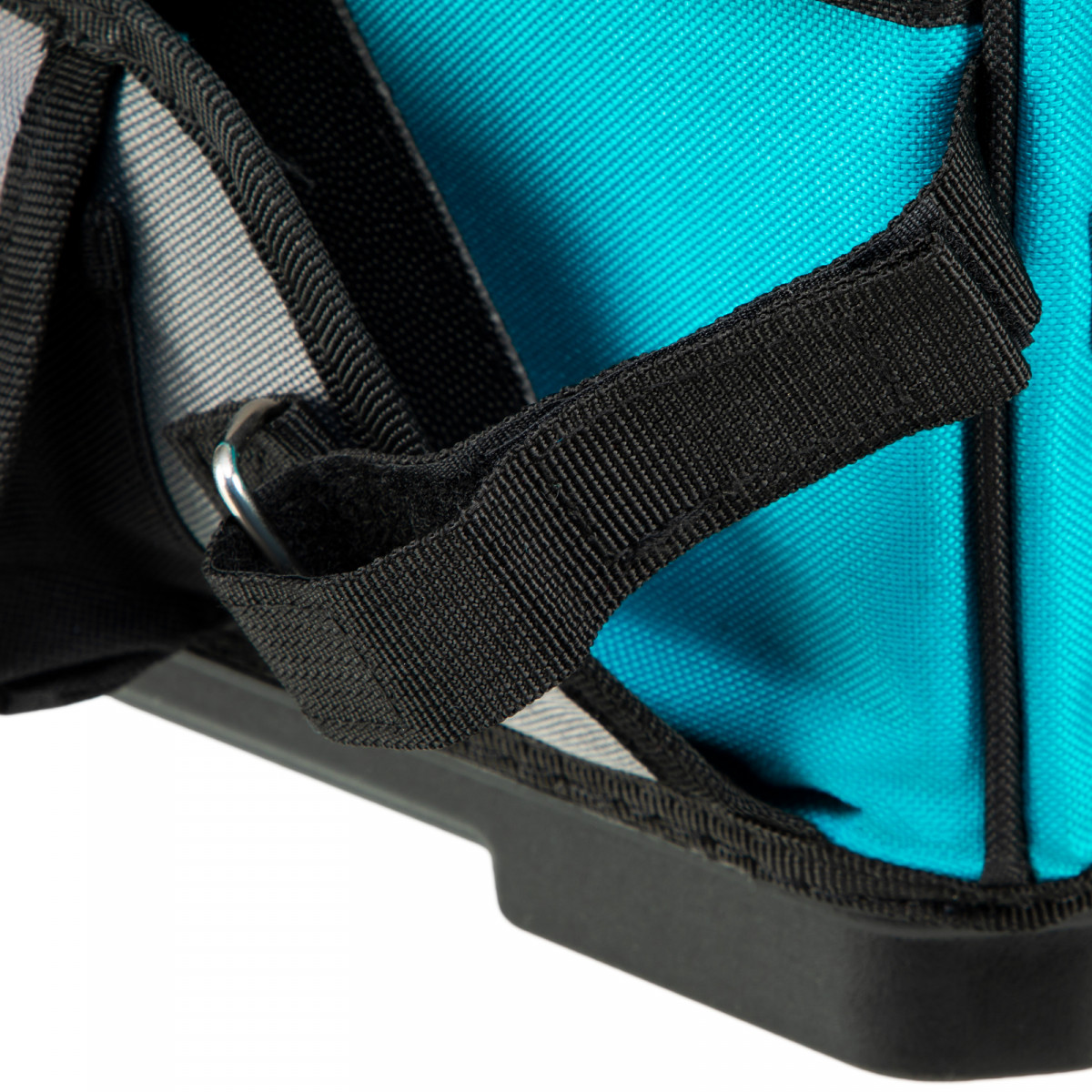 • Дополнительные возможности — в переноске предусмотрен отдельный карман для ножовки, а также зацеп для рулетки.