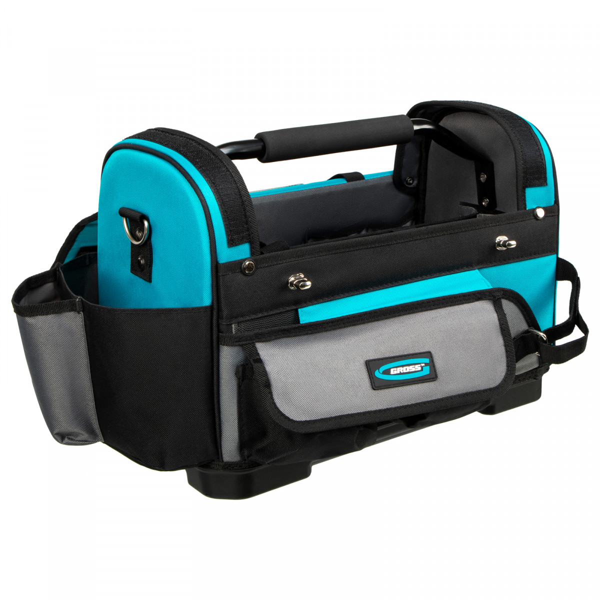 Переноска Gross 90274 размером 400 х 225 х 300 мм с пластиковым дном и наплечным ремнем используется для хранения и перемещения ручного и электроинструмента. Сумка с прочным дном и надежной ручкой выдерживает значительный вес. Пригодится дома, в гараже и поездке.