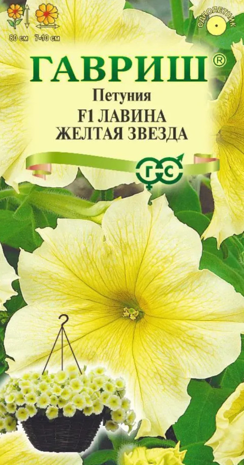 Петуния Лавина Желтая Звезда F1 ампельная 7шт гранул пробирка Гавриш