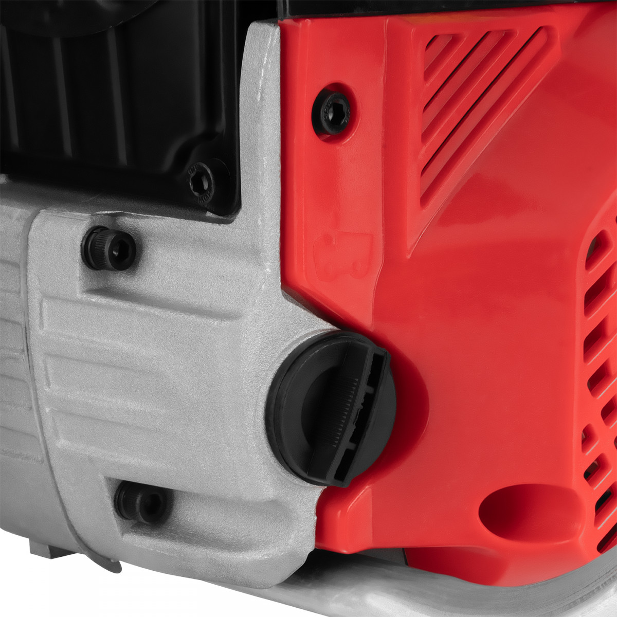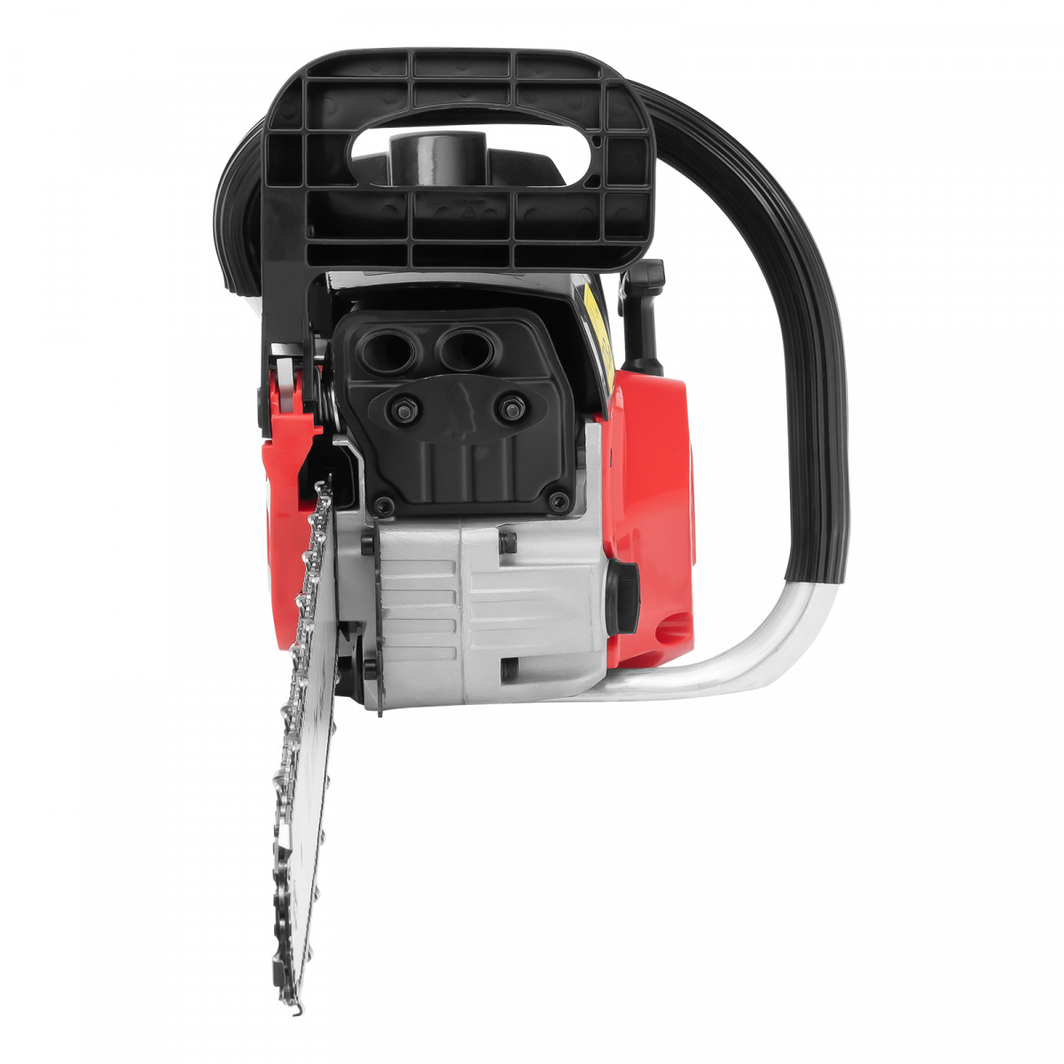 • Безопасная эксплуатация — функция блокировки газа предотвращает случайный запуск, тормоз цепи снижает риск травмирования при отскоке пилы.