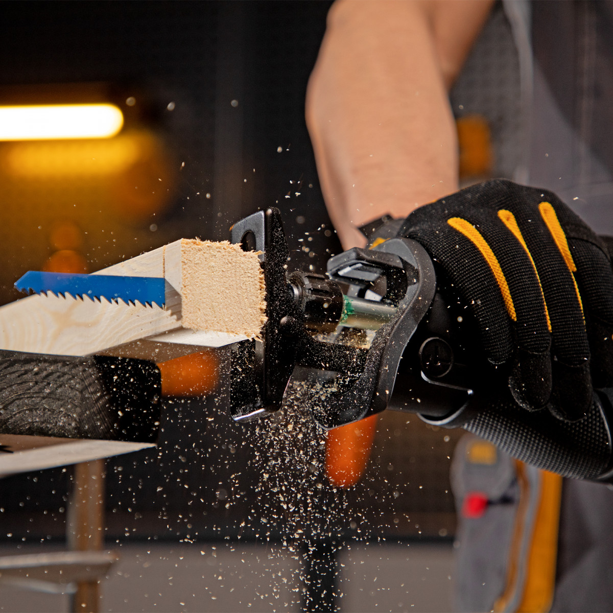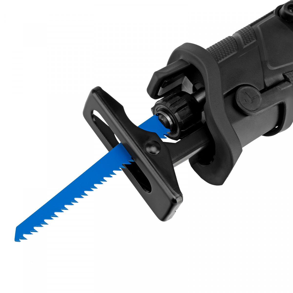Сабельная аккумуляторная пила Denzel BRC-120-0 28461 с бесщеточным двигателем работает от аккумулятора Li-Ion с рабочим напряжением 18 В. Предназначена для распила фанеры, досок, ДСП, ДВП, пластика, а также для обрезки веток. Максимальная глубина пропила в древесине составляет 120 мм, в стали — 10 мм. Оснастка совершает до 3100 ходов в минуту, что обеспечивает эффективную работу. ,Пила поставляется без аккумулятора и зарядного устройства, к ней подходит универсальный аккумулятор емкостью 4 А/ч, совместимый с любым инструментом единой платформы Denzel battery system 18V серии IB.