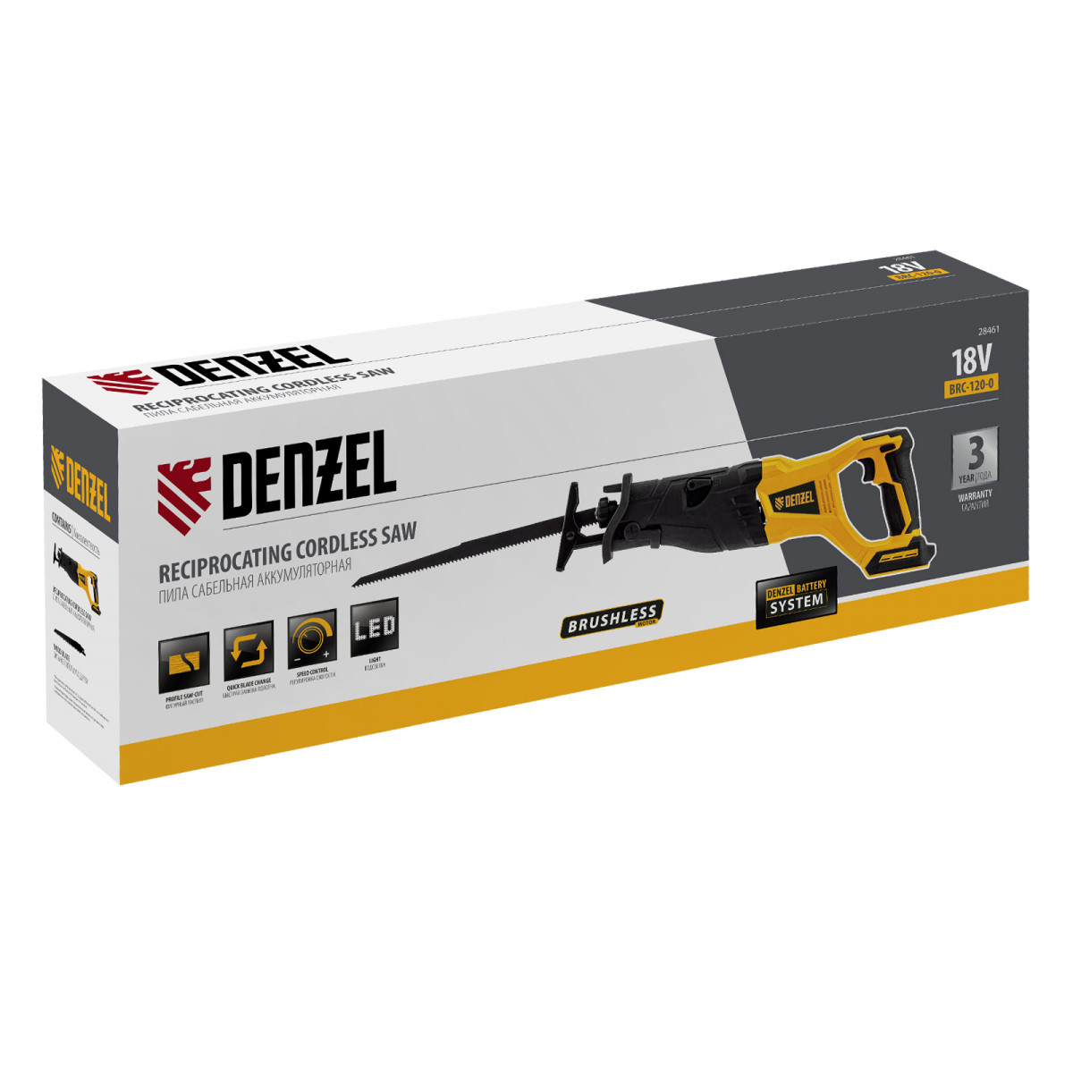 Пила сабельная аккумуляторная бесщет BRC-120-0, 18В Li-Ion Denzel