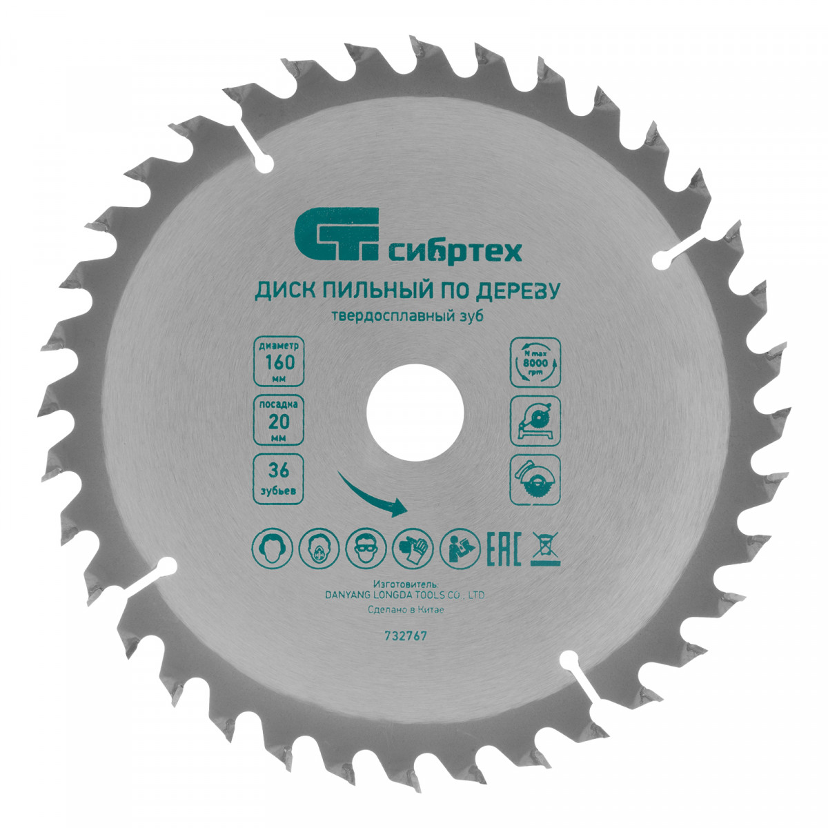 Пильный диск по дереву, 160 х 20 мм, 36 зубьев, кольцо 16/20 Сибртех