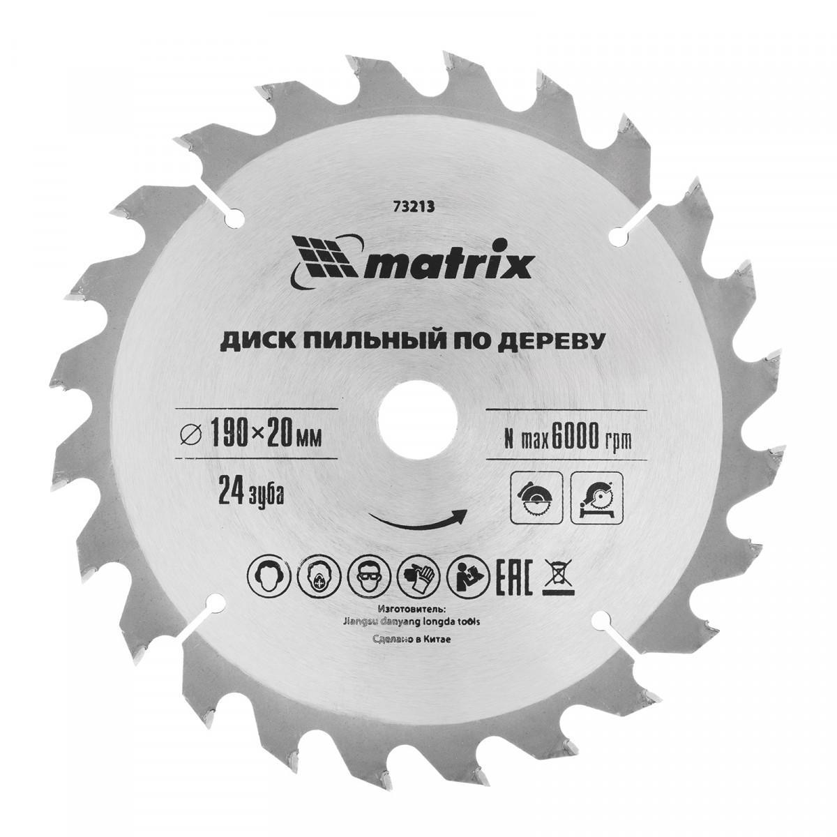 Пильный диск по дереву, 190 х 20 мм, 24 зуба, кольцо 16/20 Matrix Professional