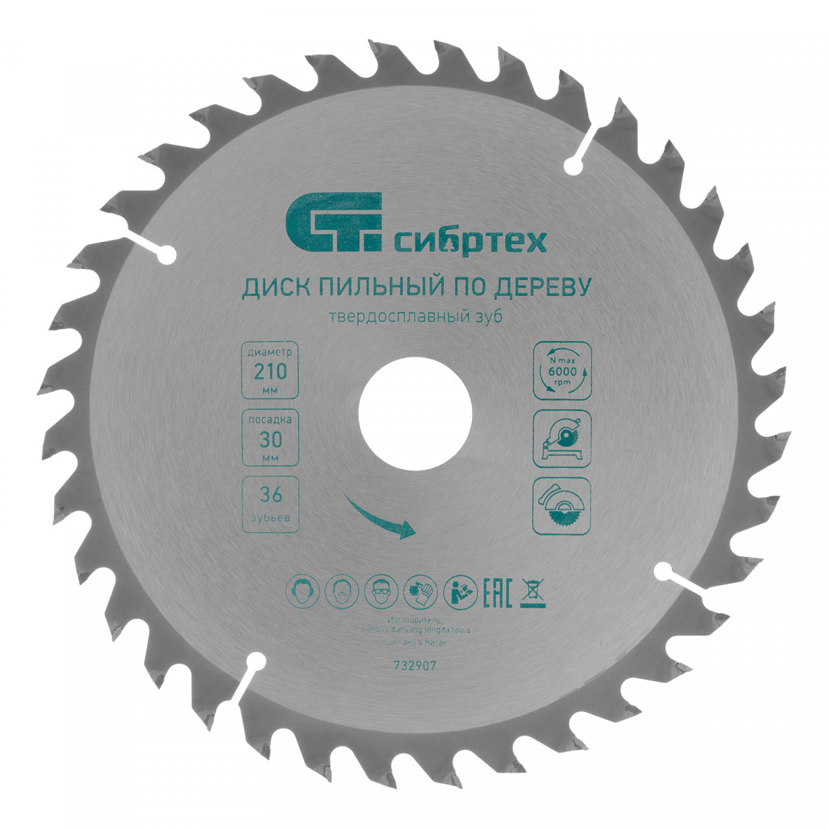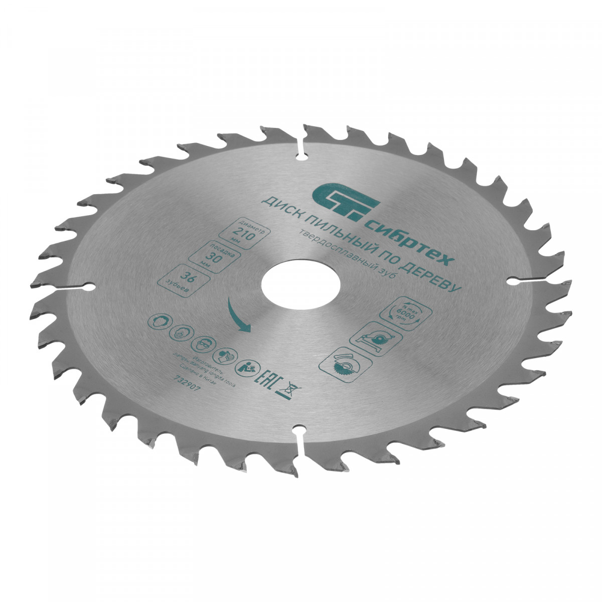 Пильный диск по дереву, 210 х 30 мм, 36 зубьев Сибртех