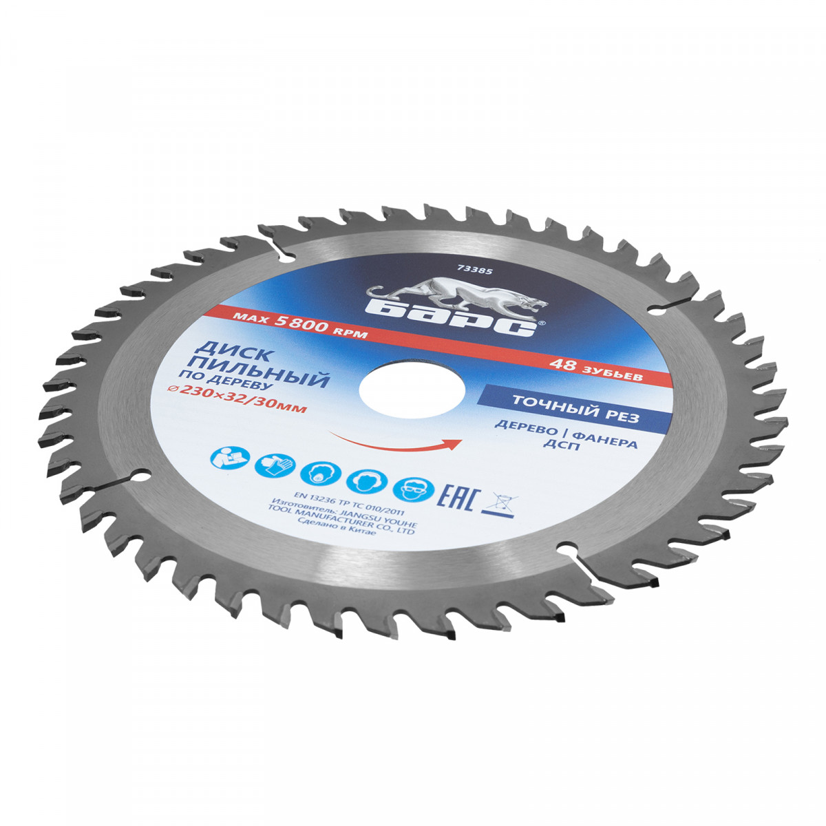 Пильный диск по дереву 230 x 32/30 мм, 48 твердосплавных зубъев Барс